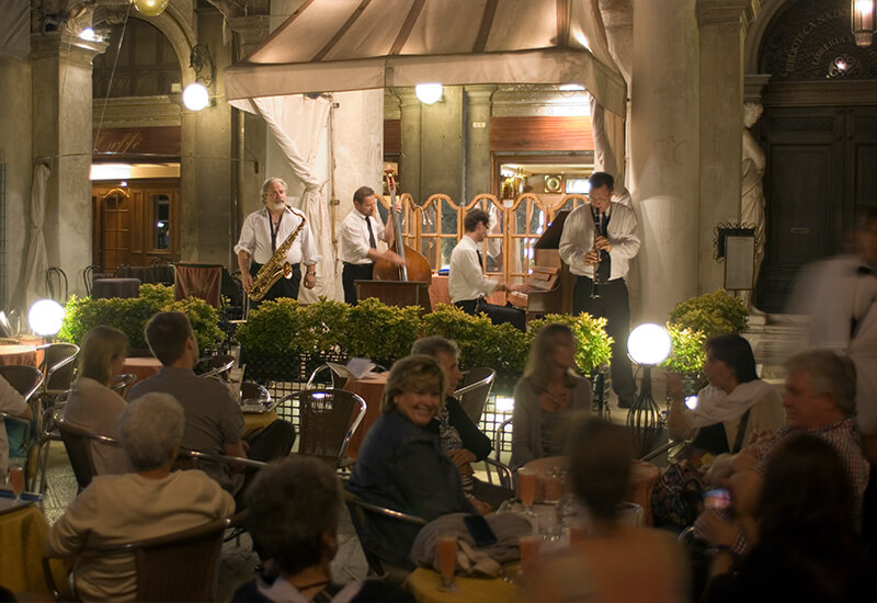 Um zu verhindern, dass Ihr Betrieb wie aus einer Episode von „Das Traumschiff“ aussieht, ist es wichtig zu wissen, wie man eine romantische Atmosphäre auf subtilere Weise vermitteln kann. Anstatt alles in Pink und Rot zu tauchen, können Sie auch die physische Dekoration auf ein Minimum beschränken und stattdessen mit einem Live-Auftritt einer Jazzband eine besondere Atmosphäre schaffen.