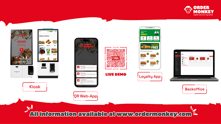 ORDERMONKEY integriert nahtlos in das Lightspeed POS-System und bietet eine moderne Selforder-Lösung, die den Umsatz steigert, Betriebskosten senkt und ein erstklassiges Kundenerlebnis schafft. Ob Selforder-Terminal, Webshop oder QR-Webapp Lösung – wir bieten flexible Optionen, die Ihren individuellen Anforderungen gerecht werden.