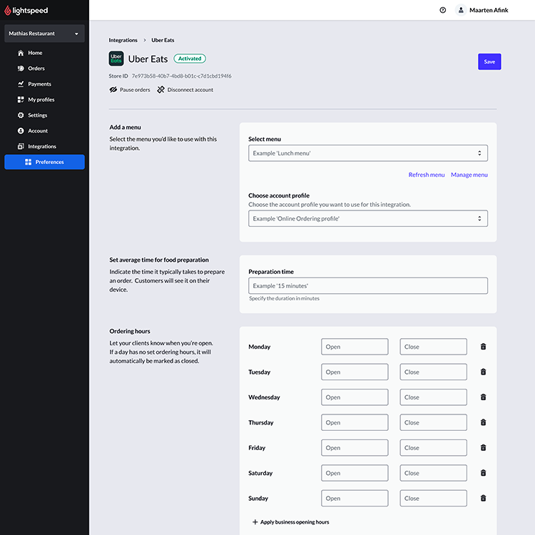 - In Lightspeed vorgenommene Menüänderungen werden automatisch mit Uber Eats synchronisiert.