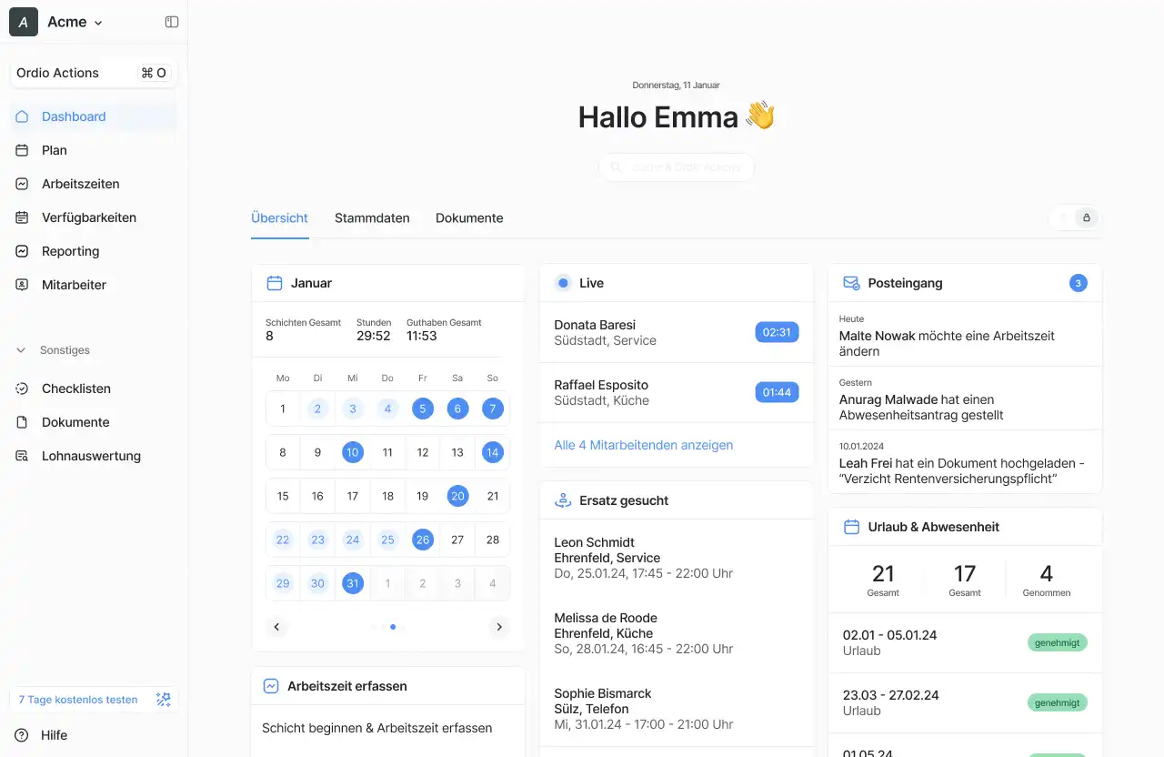 Mehr Zeit fürs Wesentliche - Mit Ordio ist es kinderleicht dein Personal in Minuten zu organisieren.