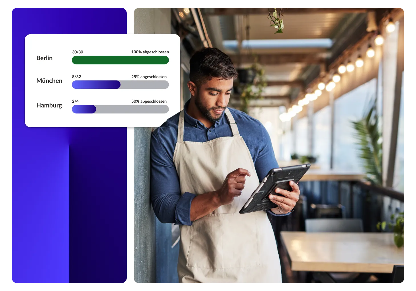 - Sichern Sie reibungslose Abläufe und Einheitlichkeit über alle Teams und Standorte hinweg, auch wenn Sie nicht vor Ort sind.