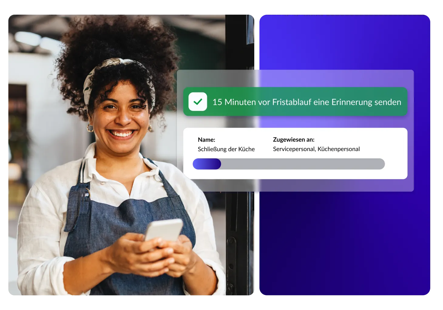- Versenden Sie gezielte Benachrichtigungen, damit jede Aufgabe rechtzeitig erledigt wird.